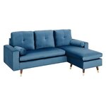 Canapé d'angle fixe réversible - 3 places - Tissu bleu - Pieds bois et doré - 194 x 139 x 83 - NEW YORK