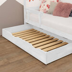 Ce lit superposé “ULURU” est fabriqué à la main en Europe. Il contient un tiroir servant de sommier pour ajouter un lit supplémentaire. Existe en 4 coloris (blanc, verni, gris foncé, non verni). Couleurs 100% naturelles, anti-allergiques . Un matelas de 18 cm d'épaisseur est recommandé (non inclus). Benlemi est une entreprise familiale spécialisée dans le mobilier en bois et notamment l'équipement des chambres d'enfant. Le bois utilisé est tracé et rigoureusement sélectionné et la chaîne de fabrication est labellisée PEFC. Produit à monter soi-même. Un manuel de montage est disponible. Garanti 5 ans. Dimensions totales du lit : 162 x 99 x 217 cm (hauteur x largeur x longueur). Dimensions des couchages : 90 x 200 cm. Des délais de fabrication et de livraison peuvent intervenir. Capacité de charge : 100 kg/ lit. Pour les enfants à partir de 6 ans. Hauteur du tiroir : 22 cm.