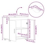 Ce meuble pour la salle de bain est une solution pratique et stylée. Il combine utilité et beau design, parfait pour un espace bien ordonné et agréable visuellement. Grâce au bois d'ingénierie, il a une belle allure et est costaud, idéal pour les foyers qui veulent du style et de la qualité. Son design simple s'adapte à toutes les palettes de couleurs, donc il va bien avec différents styles de salle de bain. Construction en bois d'ingénierie Ce meuble est conçu en bois d'ingénierie, solide et avec une belle finition. Il va résister à l'humidité, parfait pour les salles de bain. En plus, sa surface lisse se nettoie facilement, donc il reste beau longtemps.Rangement pratique Avec plein de compartiments, ce meuble aide à ranger tous tes produits de salle de bain de manière ordonnée. Plusieurs étagères permettent de bien organiser tes produits, serviettes, et essentiels, gardant ton espace dégagé. T'as un accès facile à tout ce dont tu as besoin.Durabilité et longévité Ce meuble est bien conçu, te offrant un cadre stable pour supporter des objets lourds sans risques de basculement. Parfait pour les familles actives.Intérieur uniquement Fait uniquement pour l'intérieur, ce meuble garde son look sympa loin des éléments extérieurs. Parfait pour la salle de bain mais peut aussi être utilisé ailleurs dedans si tu le souhaites.Montage requis Livré dans un emballage facile à assembler, donc il faut te retrousser les manches pour le monter. Les instructions en détail rendent ça simple, et tu peux même ajuster les étagères comme tu veux pendant le montage. Couleur: Blanc brillantMatériau: Bois d'ingénierieDimensions globales: 60 x 34 x 63 cm (L x l x H)Grand espace de stockageDurableAvec porteIndoor / outdoor: Intérieur uniquementContenant de la livraison:1 x Cabinet de lavabo de salle de bainNombre d'articles: 1Assemblage requis: OuiNom de plage: TulumEAN: 8721288935243SKU: 880325Brand: vidaXL