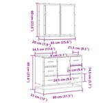 Cet ensemble de meubles de salle de bain pratique est un excellent supplément à votre salle de bain, ce qui lui donne une apparence ordonnée et saisissante ! Matériau stable et durable : le bois d'ingénierie est un matériau durable et stable dont la surface lisse résiste à l'humidité, à la déformation et au fendillement, ce qui en fait un choix fiable pour une grande variété de projets.Cadre stable et durable : le cadre en métal de l'armoire rehausse votre intérieur d'un style industriel et offre une durabilité, une stabilité et une résistance à la corrosion exceptionnelles.Grand espace de rangement : ce meuble de salle de bain offre suffisamment d'espace de rangement pour garder vos essentiels bien organisés et à portée de main.Dessus de meuble pratique : le dessus du meuble d'évier a un trou, il est donc idéal pour placer l'évier.Fonction murale : l'armoire de toilette peut être fixée au mur pour économiser de l'espace au sol, ce qui la rend particulièrement adaptée aux pièces avec un espace limité. Attention :Pour éviter qu'il ne bascule, ce produit doit être utilisé avec le dispositif de fixation murale fourni. Bon à savoir :Les vis et les chevilles pour l'intérieur du mur ne sont pas incluses. Nous vous conseillons de trouver et d'utiliser des vis et des chevilles adaptées spécifiquement à vos murs. Si vous n'êtes pas sûr, vous pouvez consulter un professionnel. Veuillez lire et suivre chaque étape des instructions.Couleur : sonoma grisMatériau : bois d'ingénierie, métalDimensions de l'armoire à miroir : 65 x 20 x 60 cm (l x P x H)Dimensions de l'armoire de lavabo : 80 x 33 x 60 cm (l x P x H)Capacité de charge maximale (chacun) : 60 kgAssemblage requis : ouiLa livraison contient :1 x armoire à miroir1 x meuble-vasque