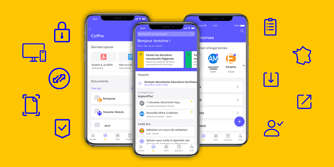 - Gestion et sécurité : archivage numérique des documents essentiels et confidentiels, avec stockage sécurisé et accès simplifié 24h/24 et 7j/7.